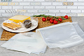 Применение: для упаковки в вакуум пищевых и непищевых продуктов - колбасные изделия, мясные готовые деликатесы, рыба замороженная, сыры, овощи свежие и приготовленные, орехи, сухофрукты, медицинские изделия, хоз. товары и т.д.